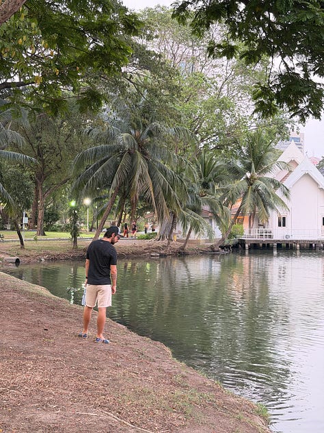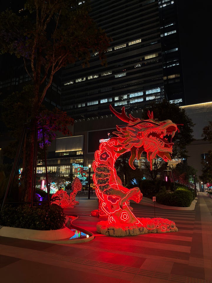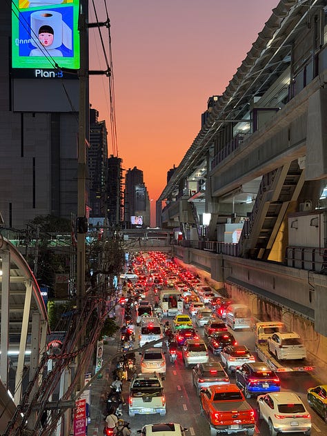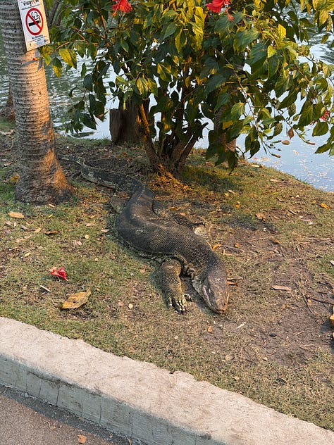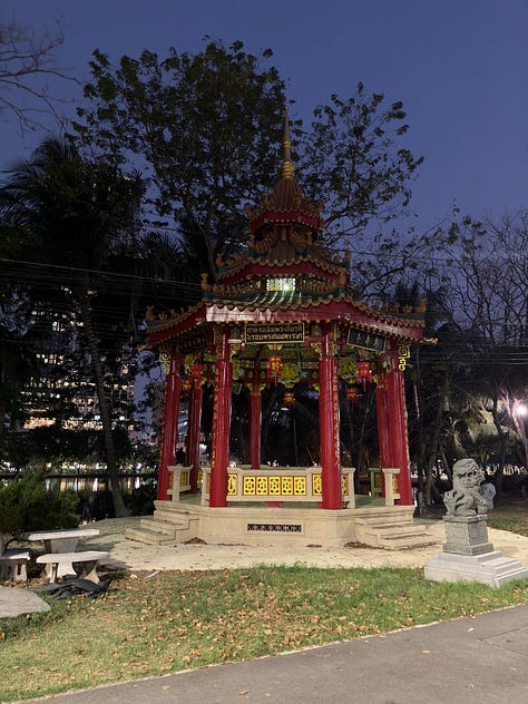 I’ll put some snaps below of random days and evenings out… it includes: a big dachshund robot, an evening stroll in Lumphini Park, and a private sound bath.